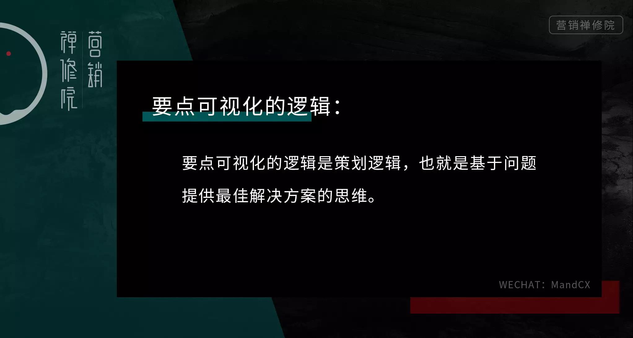 是的,要点可视化的逻辑是策划逻辑,也就是基于问题提供最佳解决方案的思维。