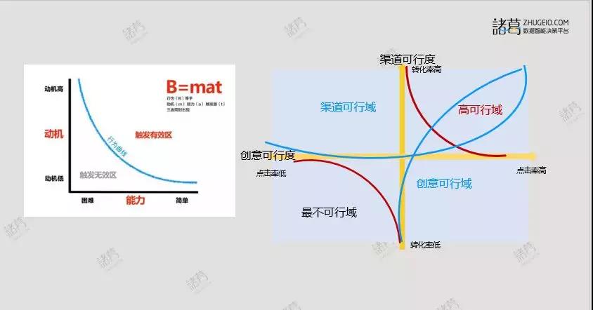 上方左侧图是一张福格模型的图,福格大哥将影响用户行为动机的因素拆分为mat三个因素。