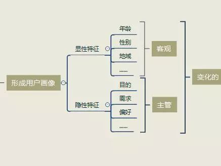 用户观察之后往往会形成一个简要报告,这个就会涉及到用户画像问题,用户画像又可以从显性特征(年龄、性别、地域等客观因素)和隐形特征(目的、需求、偏好等主观因素),但是这其中又要考虑到这些内容不会是一层不变的,例如年龄就是一个变化的过程。