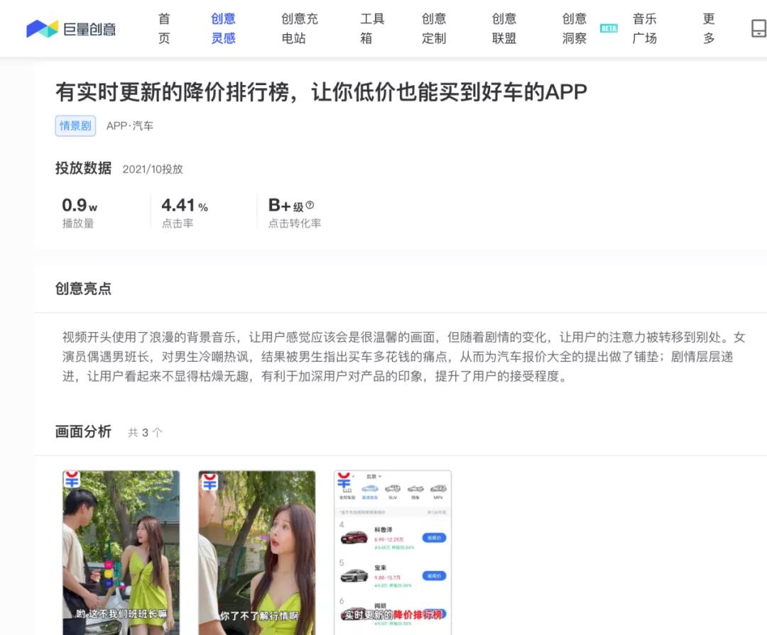 披露了广告标题的点击率、点击转化率等数据,另外还有对视频画面、视频拍摄制作手法的分析,搞视频没思路的时候也可以参考参考。