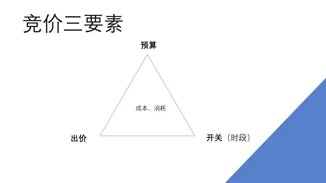 无论是对于新人,还是对于有一定经验的优化师,预算、出价和开关都是投放的时候比较关键的三个因素,我们管它叫"竞价三要素"。