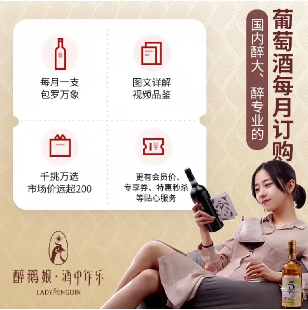 醉鹅娘每月订购的模式,是针对一些对葡萄酒要求不是特别高,非资深爱好者,但每月又想要喝不同酒款的小资人士,这种模式满足了消费者猎奇的心理。