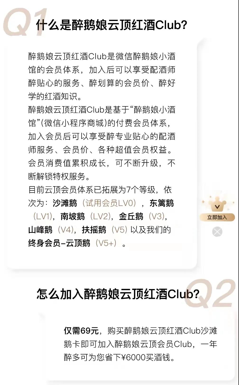 非会员用户只能通过先购买沙滩鹅会员,加入微信醉鹅娘小酒馆云顶红酒会员体系成为会员。