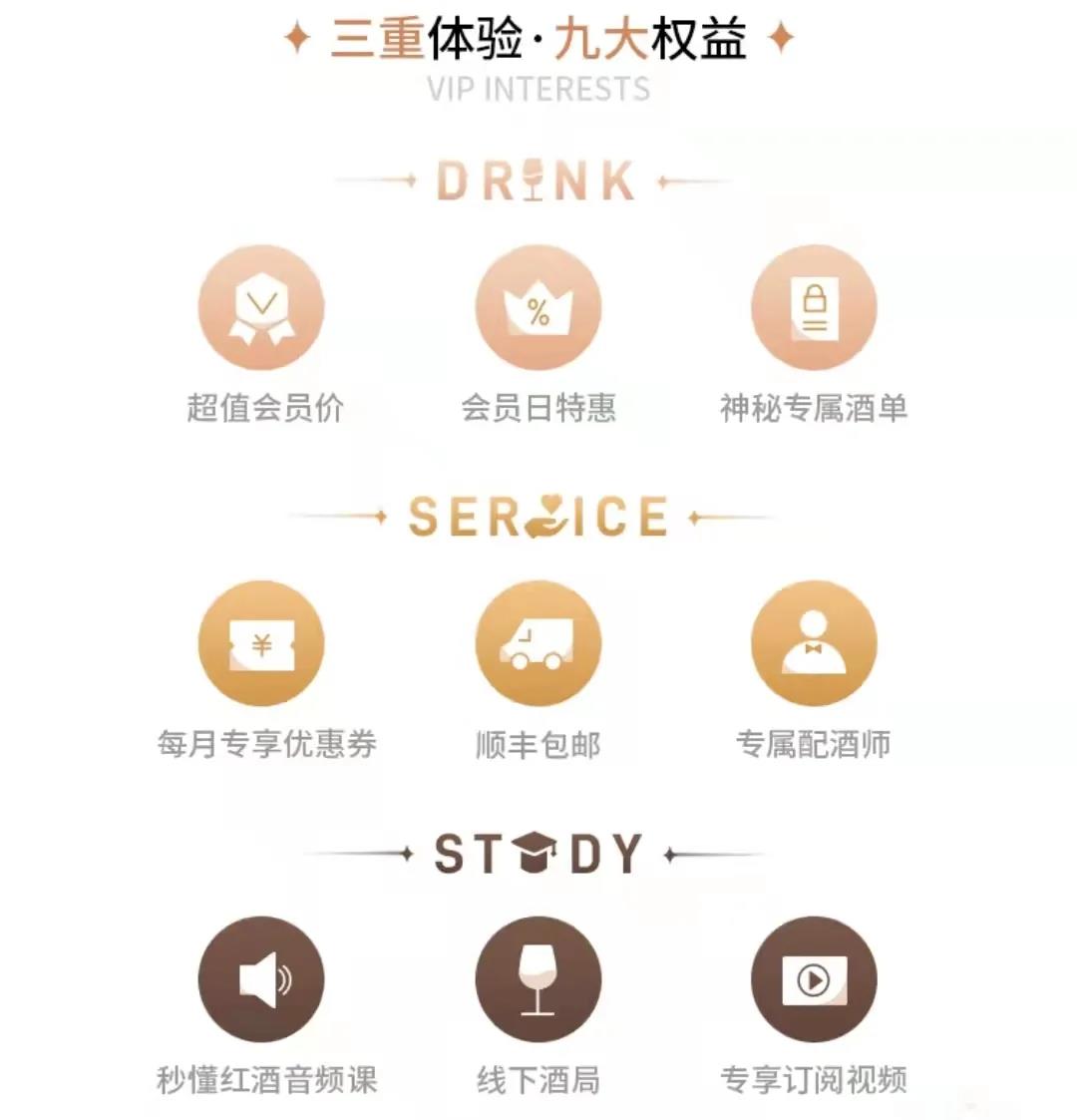 同时用"目标用户都能听懂的方式"去接近目标用户,培养用户品尝红酒的生活习惯,不断提高用户的品牌认同及价值认同,进而促进用户转化为付费用户、进化为等级会员。
