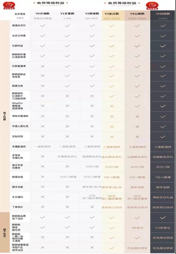 云顶红酒club会员,是醉鹅娘帮助服务VIP用户、培养忠诚用户的重要手段,主要会员来自对红酒有一定认知基础和有一定经济实力的人群。这种会员模式推行了专属销售顾问,即配酒师,会根据会员等级及会员偏好,推荐葡萄酒,提高客户服务满意度,来打造服务价值壁垒。据了解,其会员数量规模在万人以上。