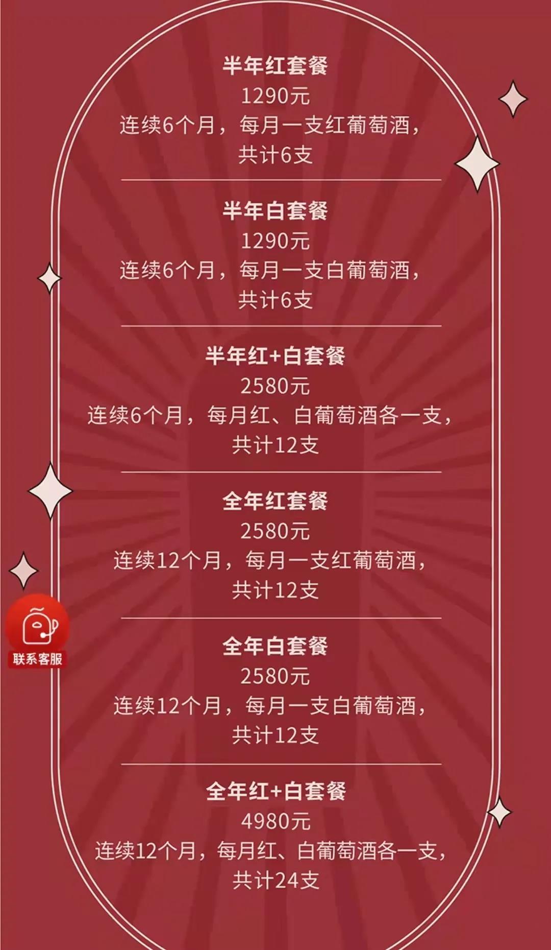 每月订购至少半年起订,套餐分为:半年红套餐、半年白套餐、半年红+白套餐、全年红套餐、全年白套餐、全年红+白套餐,共计6款套餐。