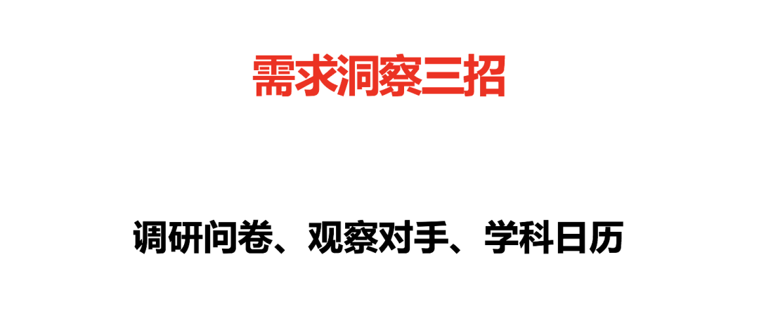 1、洞察需求有三种方法,即调查问卷、观察对手、学科日历。
