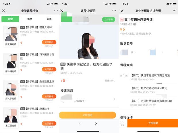 公开课:也用0元或1元这样的免费、低价的手段来吸引用户报名,只不过内容偏向具体的学科内容,目的是利用老师专业性和课堂体验来影响用户,至于形式则多是单一直播课或系列直播课,偶尔也有录播,比如作业帮和猿辅导的公开课。