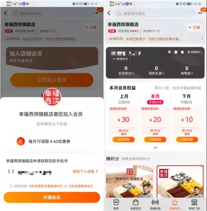 核心是电商逻辑,店铺运营,流量至上;淘宝有设置简单的会员体系。会员主打权益为优惠券。引导入会主要便于获取用户信息进行优惠推送。便于后续的唤醒动作。
