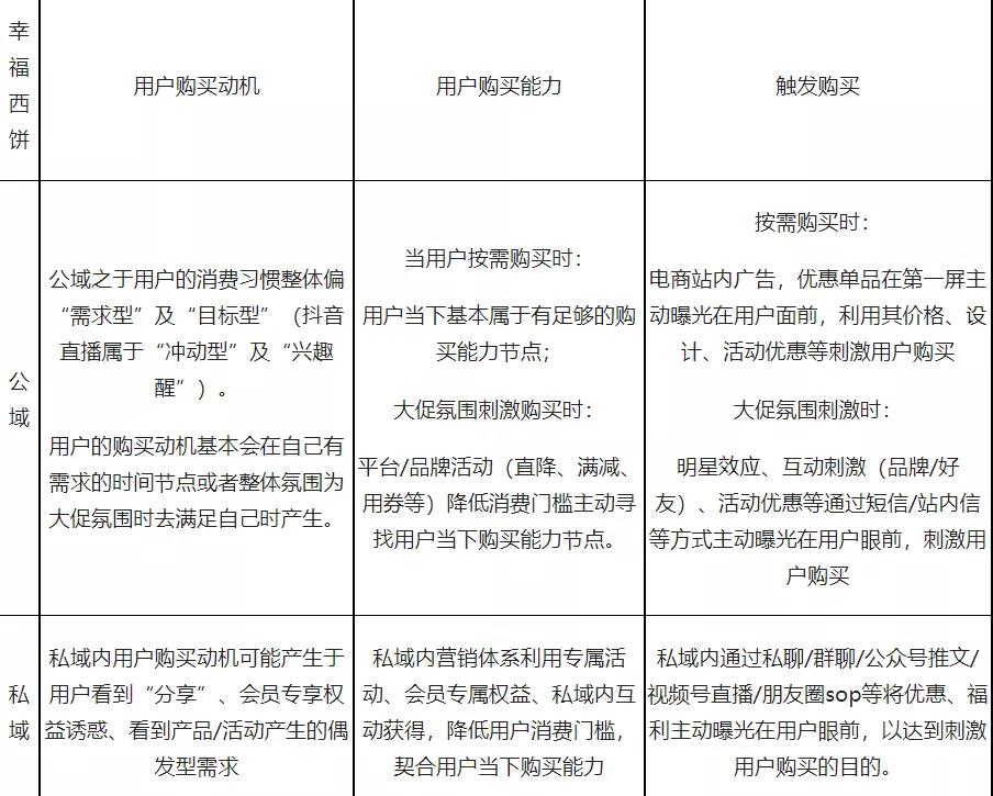3)从触发要素来说,公域之于用户可触发用户购买的机会远远低于私域,特别是基于微信的私域,私域的"触发"行为发生在用户在日常社交的过程中。