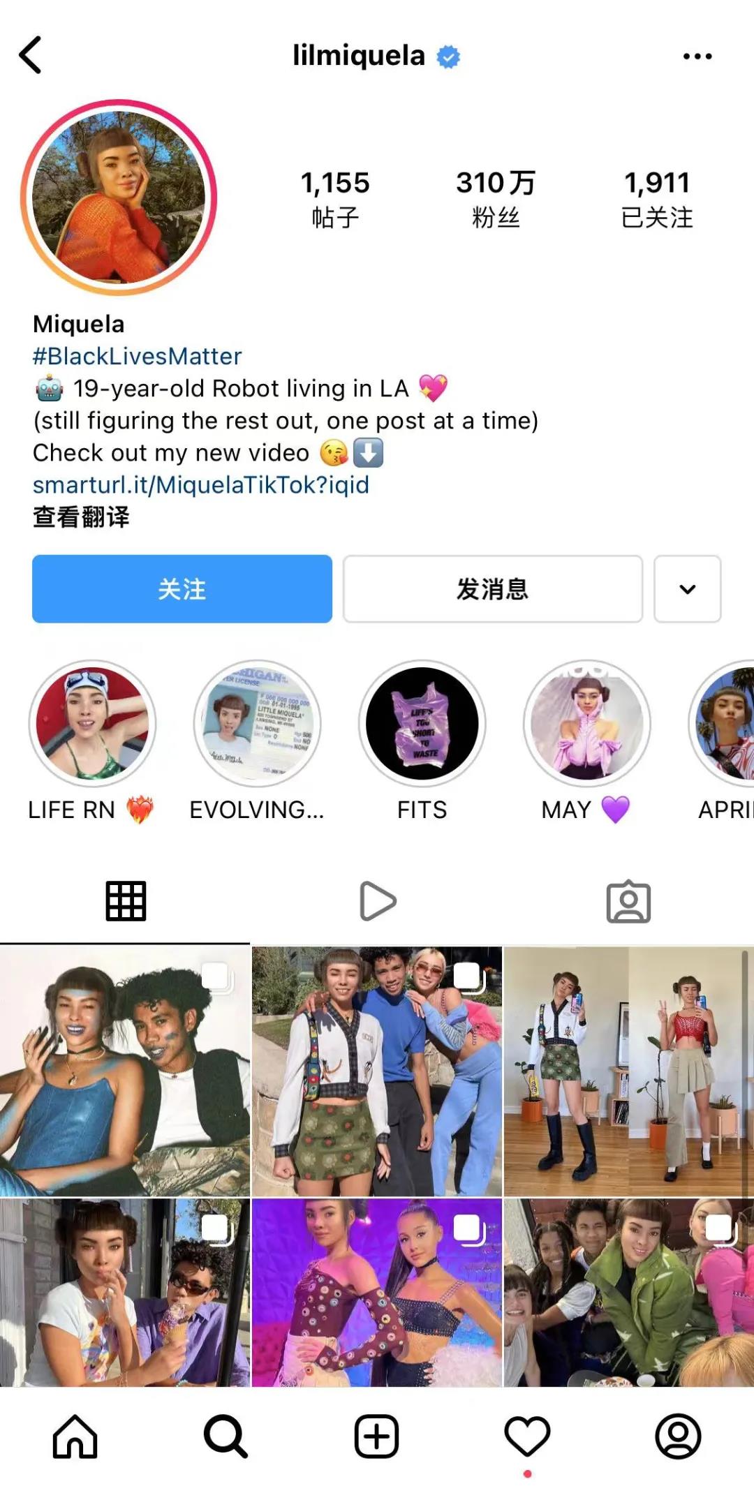 但对于品牌来说,"养成"一个虚拟偶像并非容易,依靠的是持续不断的文化输出和个性一致。国外虚拟偶像Lil Miquela在社交网站上十分出众,会分享自己的穿搭、美食、社交,表情动作多变,像年轻人一样。