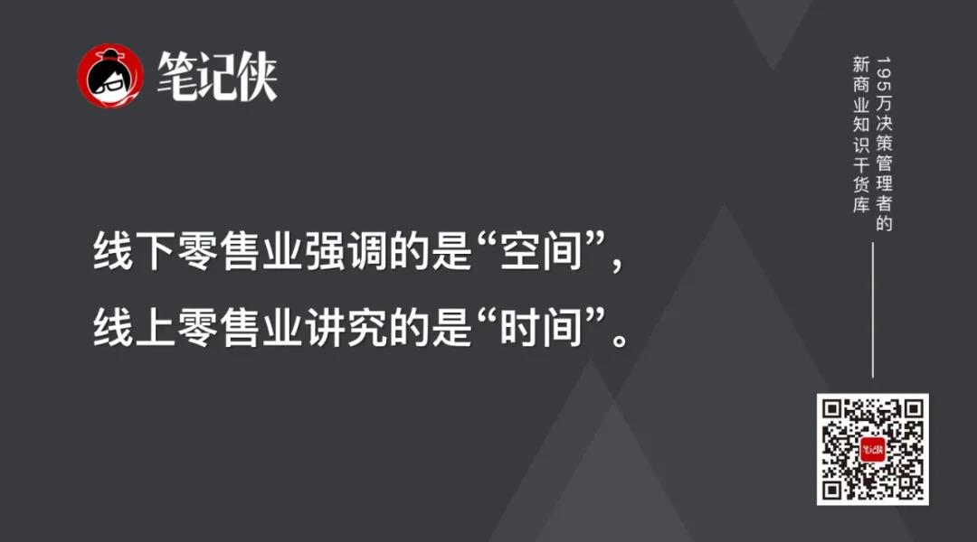 线下零售业强调的是"空间",线上零售业讲究的是"时间",在互联网的协同下,零售业既强调空间的效率,也讲究时间的效率,这就是新的零售时代,即根据消费者需求的不同动机,随时转换时间和空间。