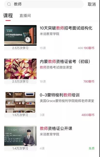这样就可以找到很多竞争对手的微信群,同时可以去"窥视"竞争对手是如何做活动 的,课程是如何设置的,如何招生的各种信息。