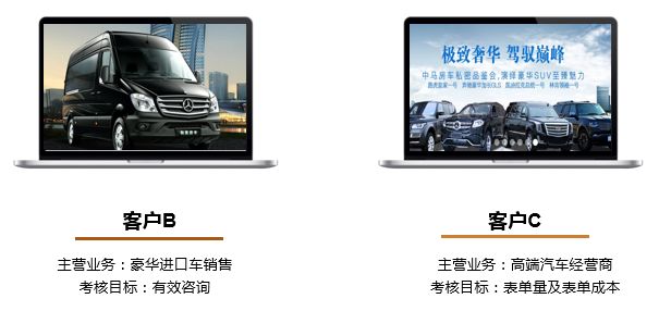 信息流投放产品线:丰田埃尔法,保时捷,兰德酷路泽,普拉多,奔驰GLE,奔驰GLS,奔驰S,雷克萨斯LX570,路虎揽胜等。