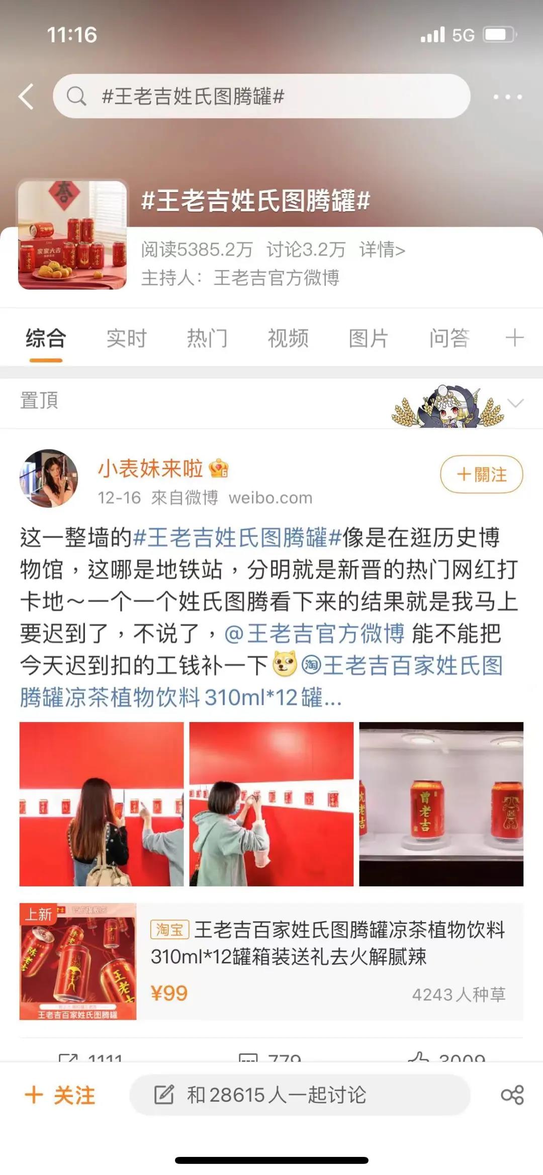 有了吉文化的赋能后,王老吉又将目光投向更远处:基于消费者对新年家族团聚、祈愿的需求洞察,围绕"过吉祥年,喝红罐王老吉"的春节营销主题,打造了多领域、多方式的传播渗透,以极具参与度的全网讨论进一步发挥了姓氏图腾罐传播效能。