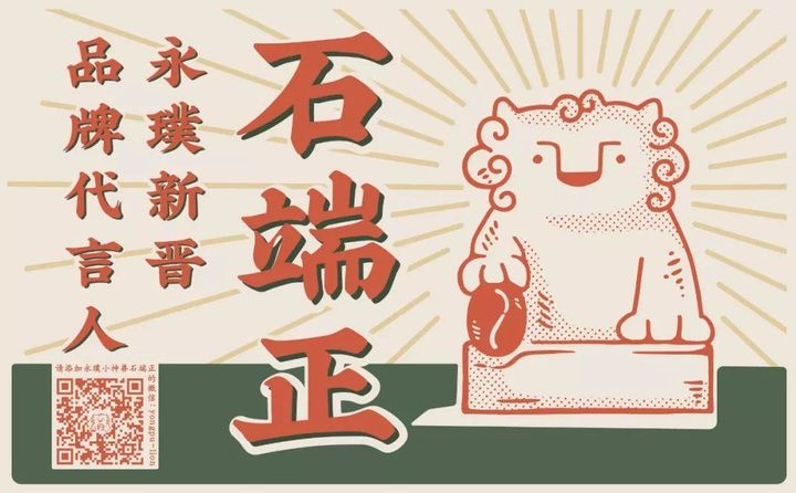 2019年年永璞咖啡进行品牌升级,打造了品牌IP“石端正”,“石端正”形似中国用来镇宅的石狮子,形象非常的呆萌。石端正不仅是产品包装上的二维图像,它还拥有自己的生日、微博账号、定制表情包以及各种周边。