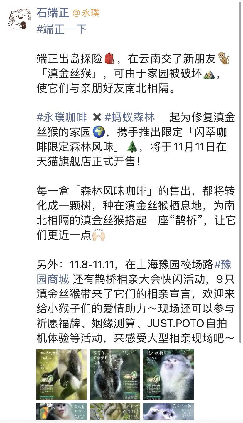 同时在今年8月,永璞咖啡为石端正举行的#端正生日趴#在微博引来了765万次的围观,过万名粉丝送上了生日祝福。