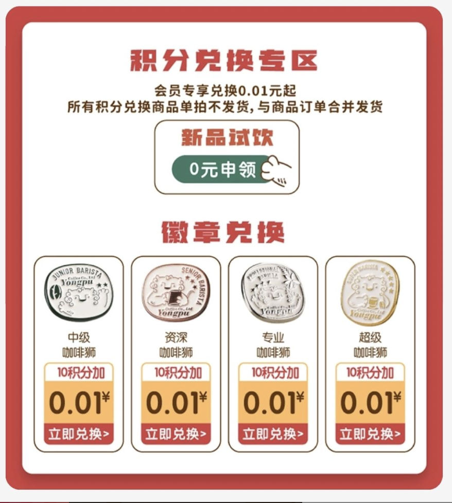 购买指定款产品后可以回收咖啡外包装,获得的积分同样可以用于兑换周边,且有指定款只能通过参与返航计划之后才能开放兑换资格。