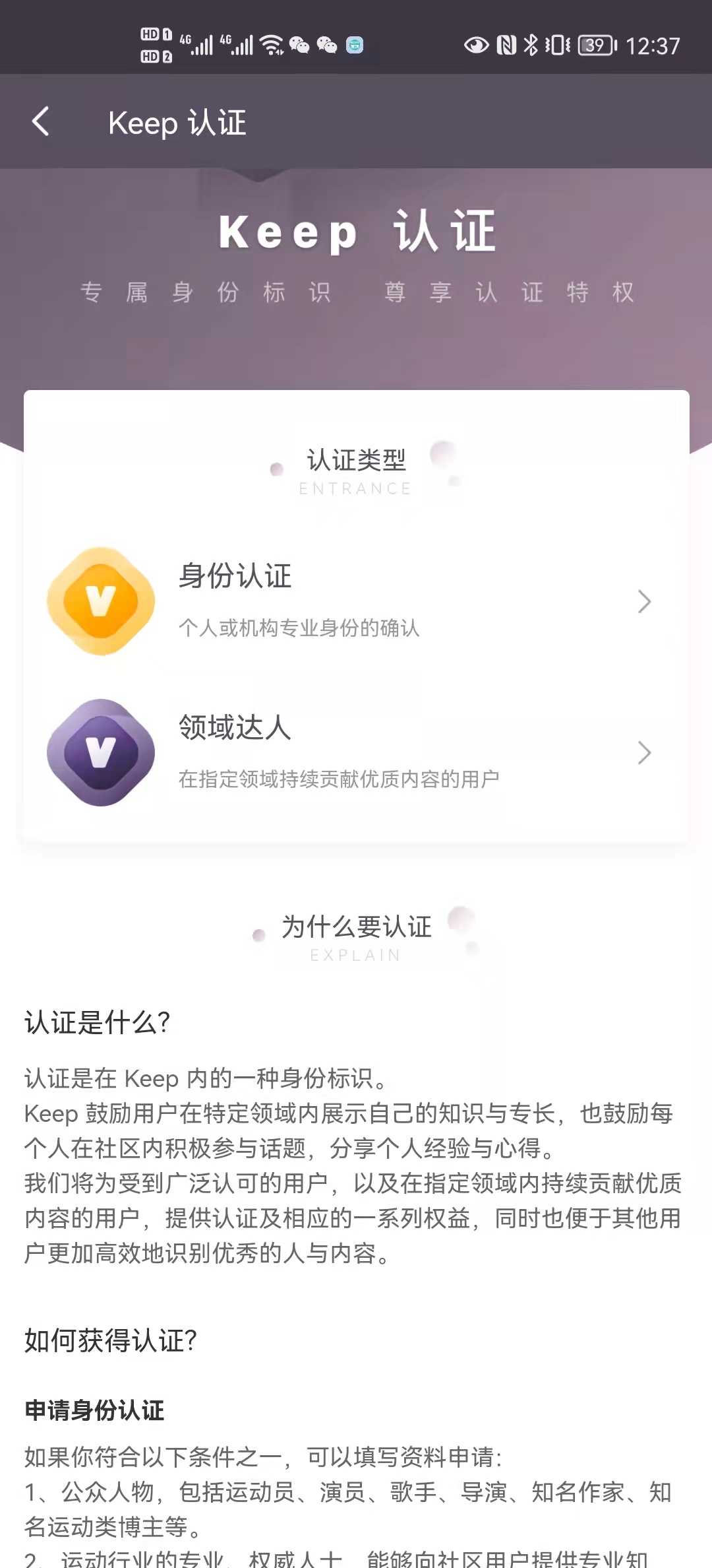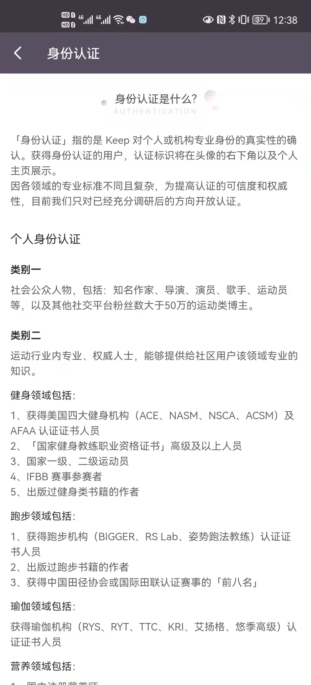 从Keep的用户认证说明中可以看出,Keep把首先达人分为了两类