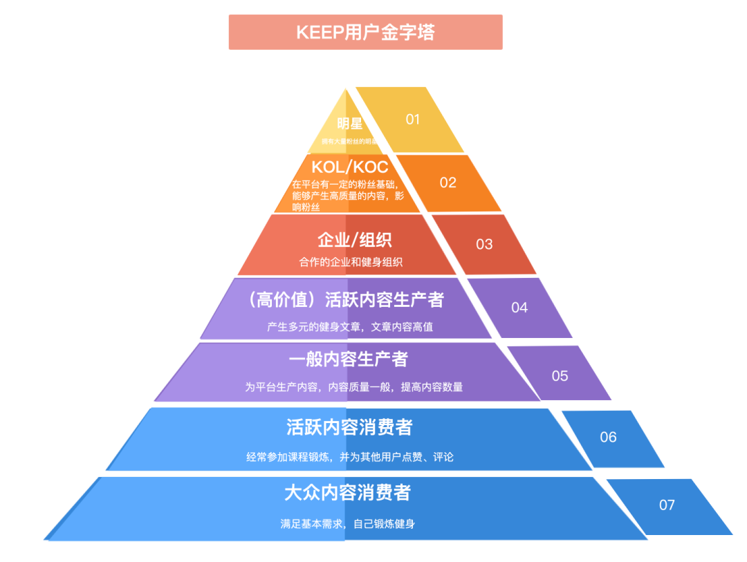 Keep社区业务模块用户,对应的是内容消费者和内容生产者,合适使用金字塔模型进行用户分层。