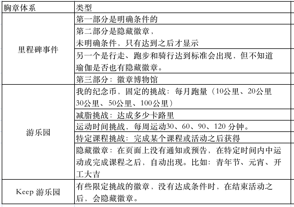 keep的胸章体系比较大,主要分为三部分:里程碑事件、游乐园、keep游乐园
