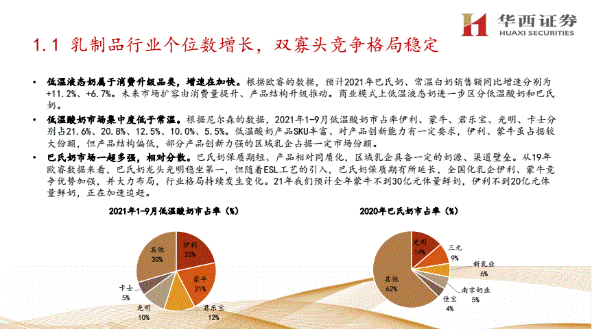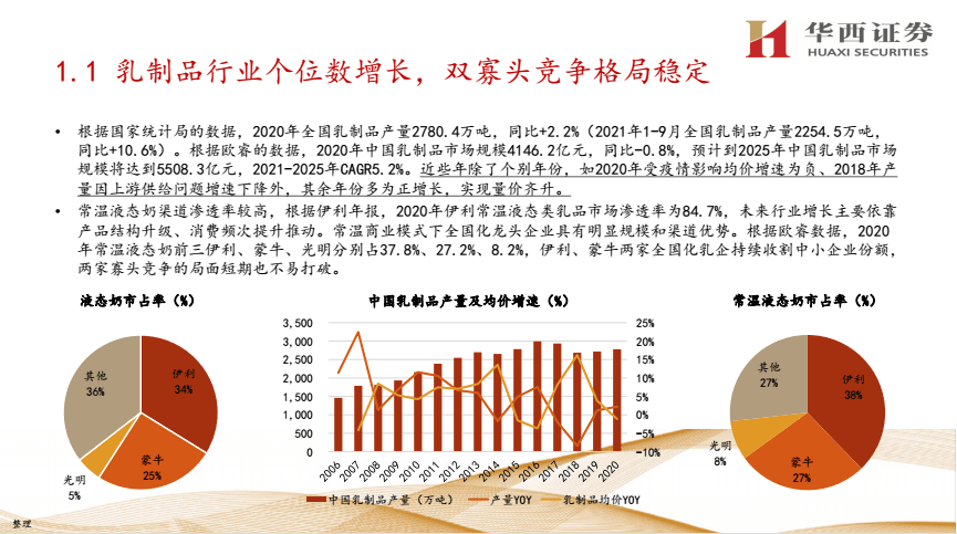 ①乳制品行业个位数增长,双寡头竞争格局稳定