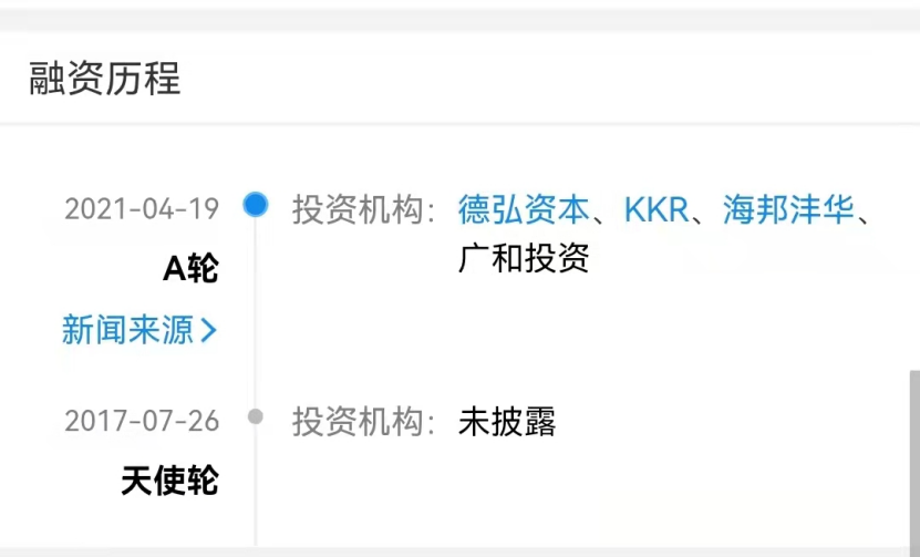 2021年4月,认养一头牛完成A轮融资,本轮融资由KKR、德弘资本(DCP)联合领投,海邦沣华、广和投资跟投,穆棉资本担任独家财务顾问。本轮融资将主要用于扩大上游优质奶牛养殖规模,同时加速企业的数智化升级和产业链精细化运营,提升用户体验。