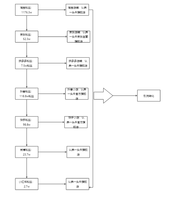 以上这几个渠道的内容重合度并不高,但布局范围很广,通过直播带货、分享企业故事、牛的故事去吸引用户,建立基础信任,再引导到自己的私域上进行转换。