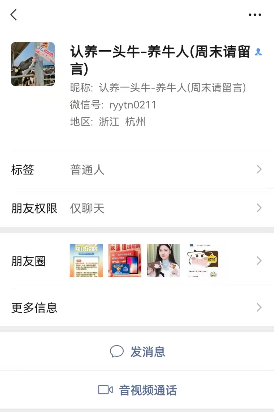 3)微信背景:和小牛哞哞的背景一样,但和人设的身份不符,用户不知道这个号到底要干嘛