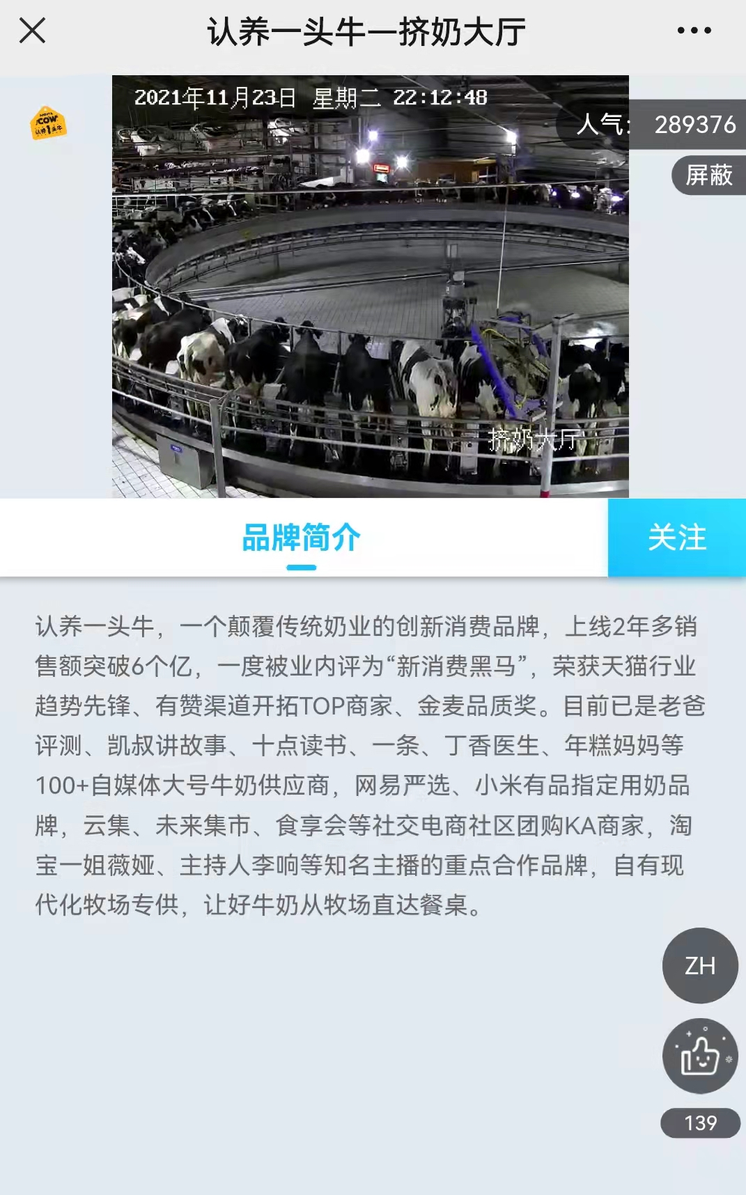 通过实时直播可以让用户更真实的看到自己养的牛的状态。