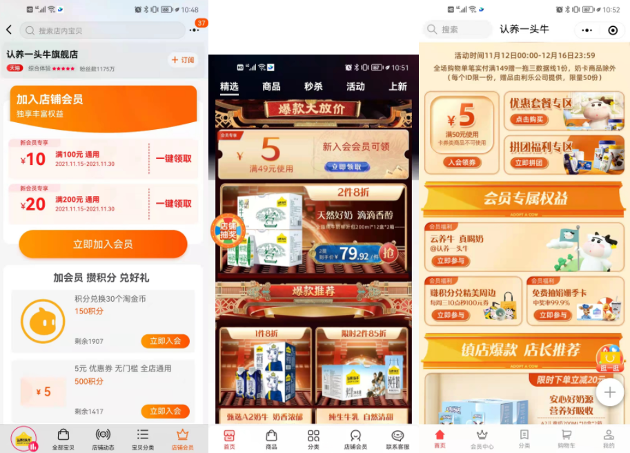 小程序:认养一头牛云牧场+认养一头牛订奶卡+认养一头牛会员俱乐部等