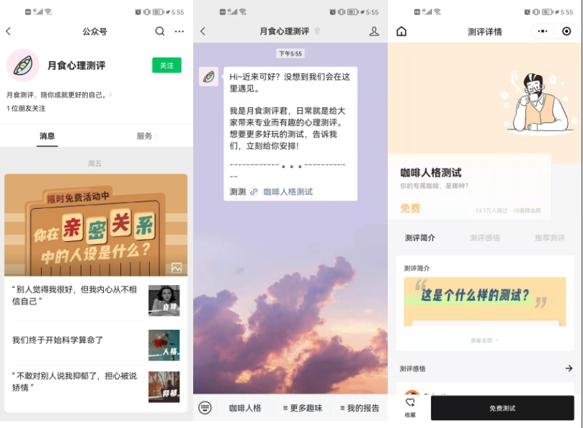 心理测试忌结果千篇一律,好看的皮囊千篇一律,有趣的灵魂万一挑一。一定要让用户感觉到自己是与众不同的。
