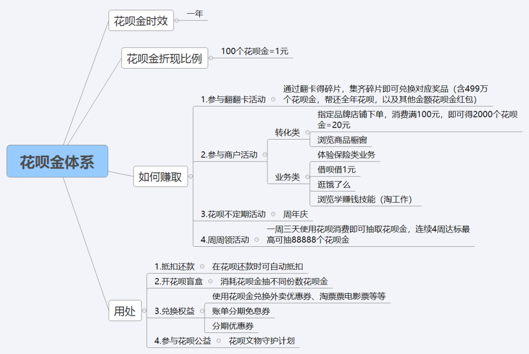 slogan“赚花呗金还花呗”,100个花呗金可以抵扣1元花呗还款。