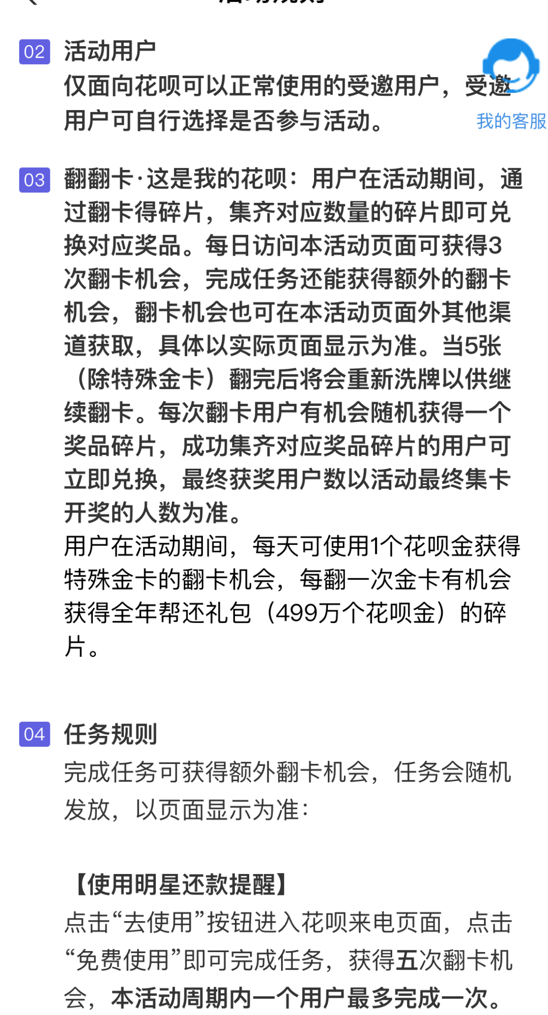 2)在翻翻卡活动里,用户不需要付出,就可以每天获得三次翻卡机会,用户能随机抽到不定数量的花呗金进行还款抵扣,给用户带来获得感。