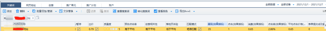 举个简单的例子,这个词是其中一个账户的词,导出来之前的数据看到,出价和平均点击价格都是偏低,看到转化成本不高,转化数据还不错,我就尝试一下,到底出价的调整能不能影响ocpc的出价最后的点击均价甚至效果。