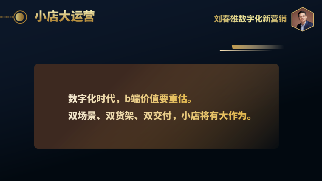 数字化时代,b端的价值要重估,特别是街头小店。将会出现“小店大运营”的现象。双场景、双货架、双交付,小店将有大作为。