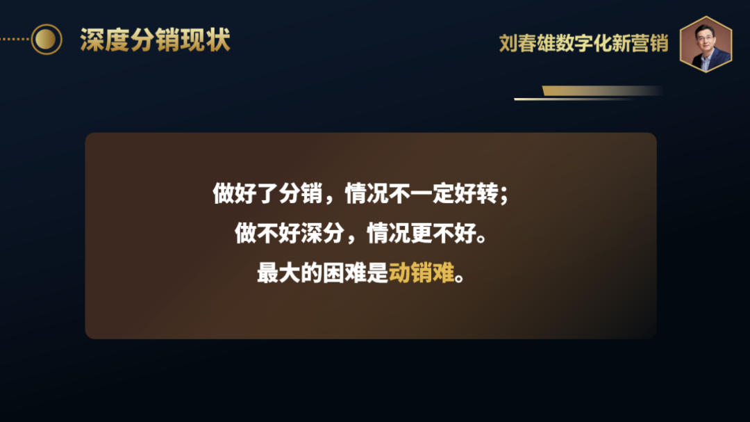 目前深度分销的现状是:做好了分销,情况不一定好转;做不好深分,情况更不好。最大的困难是动销难。