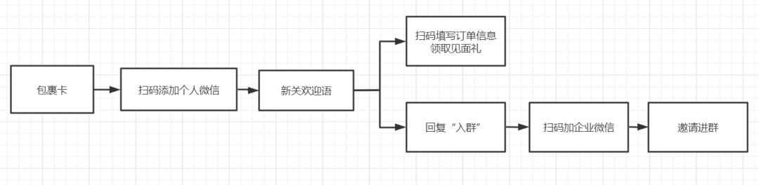用户加群路径太长。包裹卡可设计为扫描添加企业微信,并设置自动回复欢迎语引导用户加群。(可能是私域刚开始搭建,还在配置导致的问题)