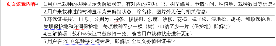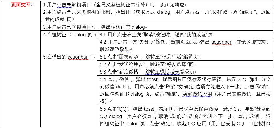 以“我的成就”页为例。从前置条件/输入、页面逻辑内容和页面交互3个方面进行说明。