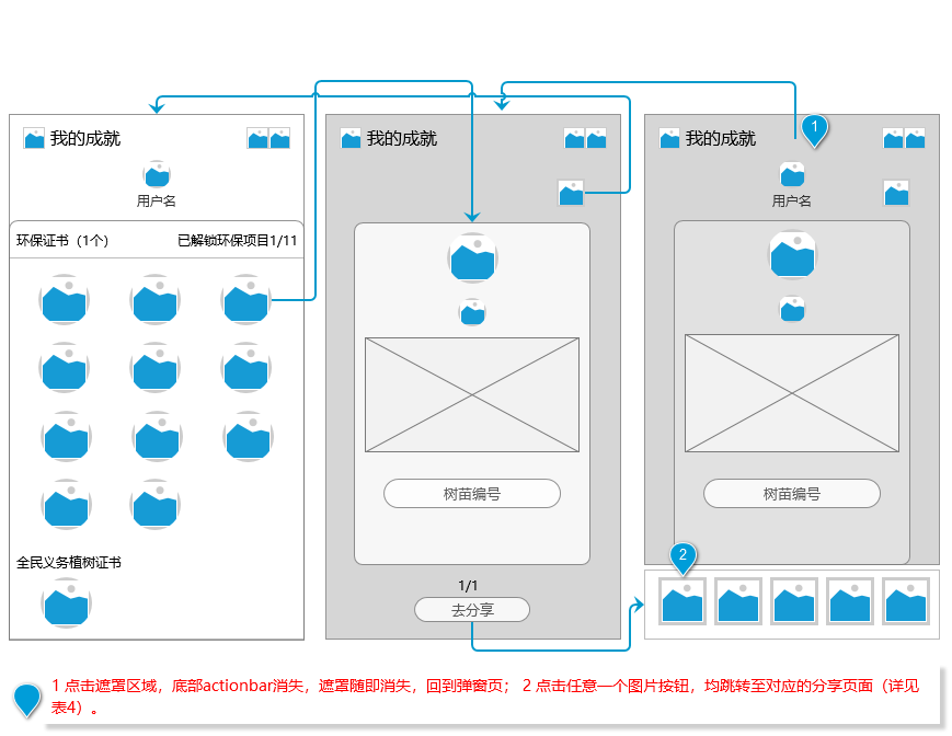 更详细的交互效果可在交互设计文档中阐述。如:在“我的成就”页。