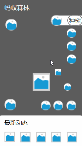 - 左上角页面名称后 显示白色圆圈缓冲图标;(点击种树,最后加载“敬请期待”图片)