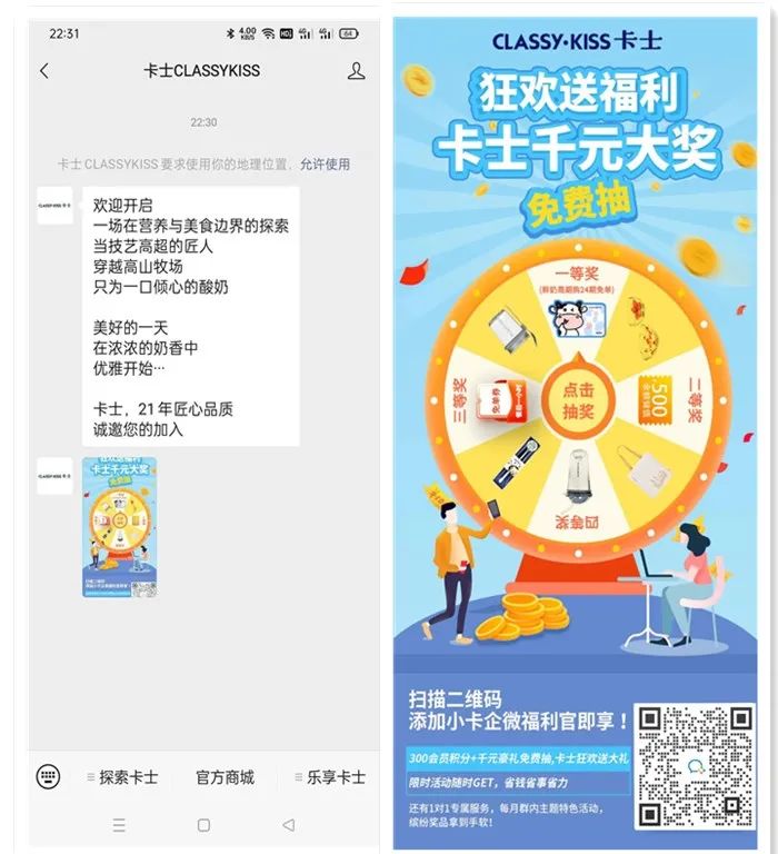 卡士酸奶作为低温乳制品行业的TOP级品牌,线下拥有大量的渠道触点,同时也在线上通过公众号,小程序等完善自己的私域,整体来说,卡士的私域生态内引流设计属于中规中矩,当然,在这之中,我依然觉得有3个亮点可以进行挖掘。