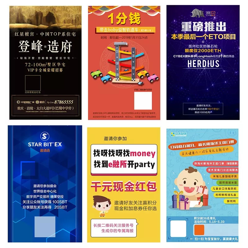 ③活动海报活动海报只要做得美观简洁,避免出现分享、转发之类诱导关注的词汇即可。因为隐私的问题就不直接放客户的海报了,大家可以查看以下活动海报的样式,以作参考。