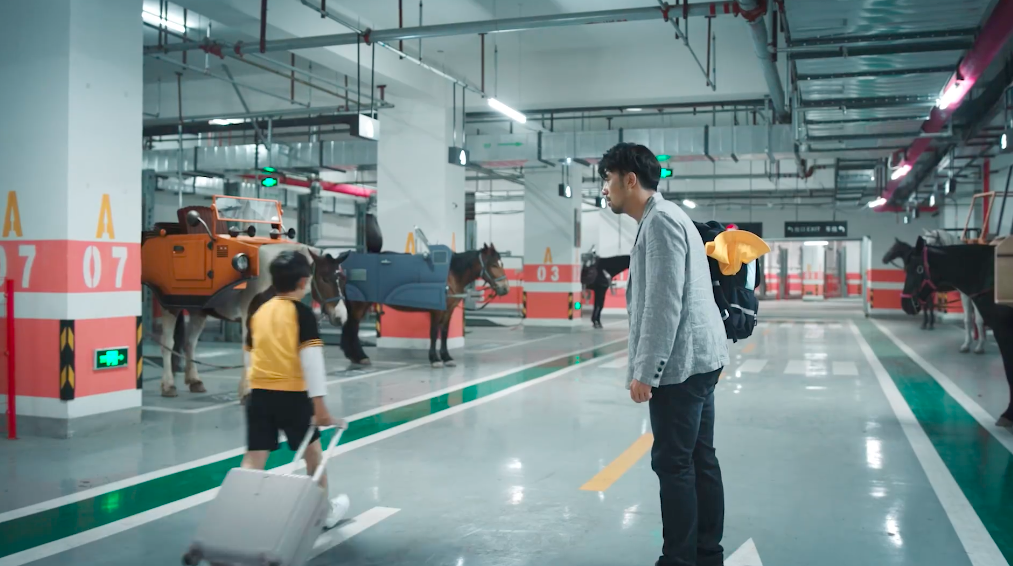 陆川导演给奇骏拍过一个同名广告片《奇·骏》,其中是将“车”拟物为“马”,上演出紧张刺激的上学之路。