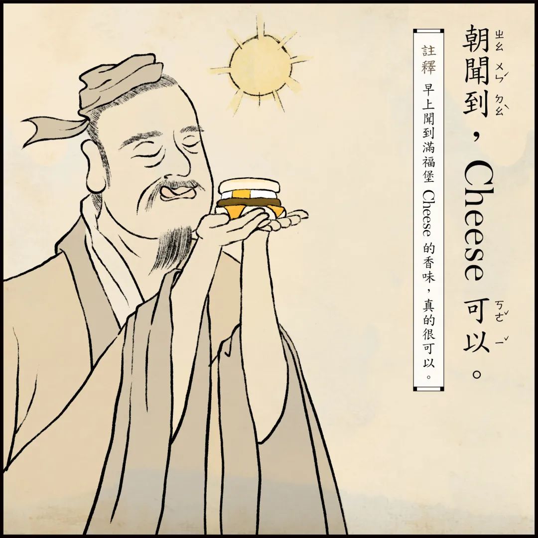 绑定名人名言,更是一种借势。哪怕是谐音梗“朝闻到,Cheese可以”,熟悉的事物夹带产品,好玩有趣,好创意。