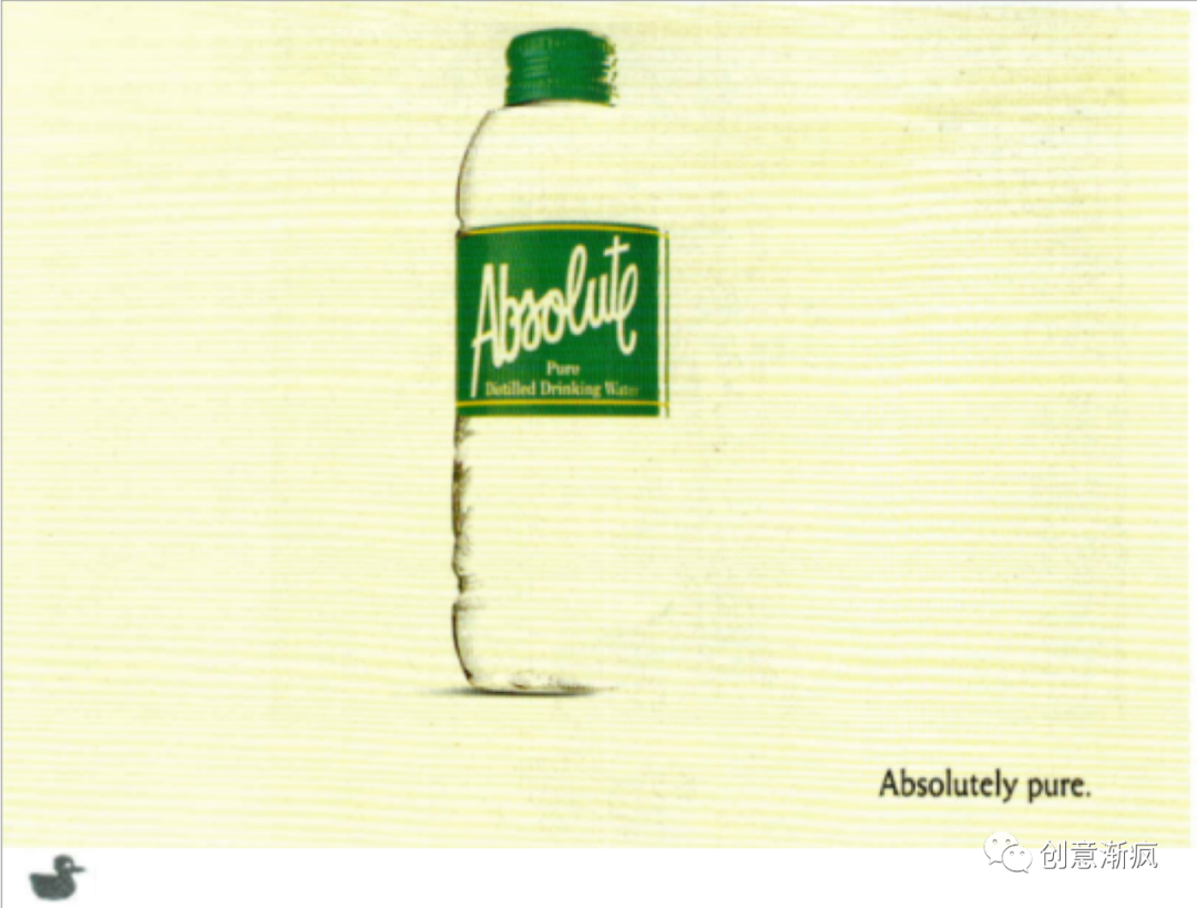 再来看一组纯净水的海报。为了突出水质的纯净无暇,第一张通过几乎透明的瓶子来呈现,但还保留了隐约可见的半个瓶身。而第二张,索性把整个瓶身都去掉了,让它和背景完全融为一体,只留下实在无法透视的瓶盖和瓶身上的包装纸,反衬出这水质是有多么的通透!这两张图的创意水准,也就高下立现了。