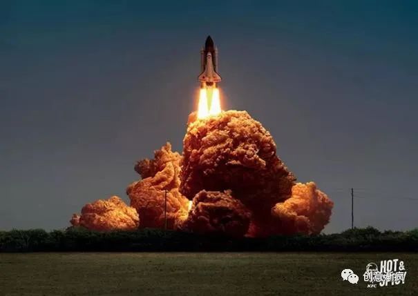 它居然把炸鸡块的辣感和航天飞机升空时所喷射的火焰相提并论,似乎想说明:这种喷薄而出的热辣火爆,正是炸鸡块带给你的震撼味觉。