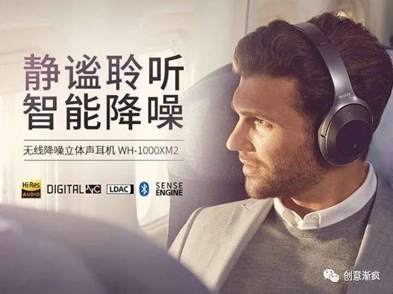 像下图这样的广告画面,展示了一个常见的降噪耳机使用场景,很容易让人视而不见。
