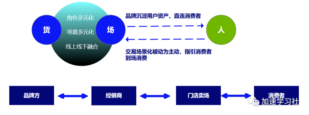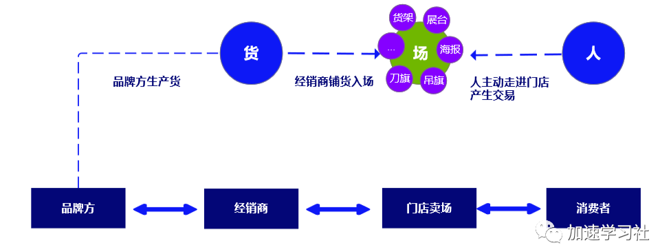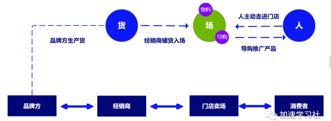 商业逻辑大多都是基于“货-场-人”,即先解决“货”的问题,再解决“场”的问题,最后解决“人”的问题。通俗来说就是品牌方把商品生产出来,通过招募渠道代理找到合适的卖场,通过卖场的流量吸引顾客,最终形成交易。