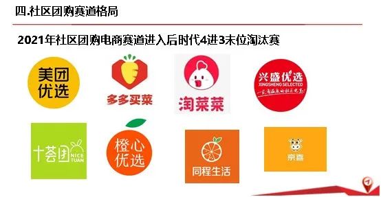 与资本团整个巨头之间的此消彼长,相信大家在大媒体上也不断的见到信息,目前的美团优选和多多买菜是第一阵营,阿里淘菜菜和兴盛优选是第二阵营。